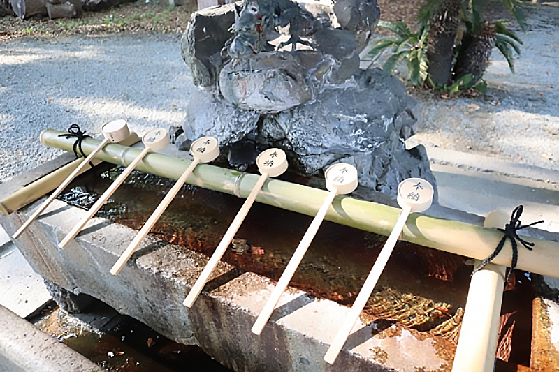 - Dùng hishaku (柄杓 / ひしゃく), một loại gáo dùng để múc nước, rửa tay trái.