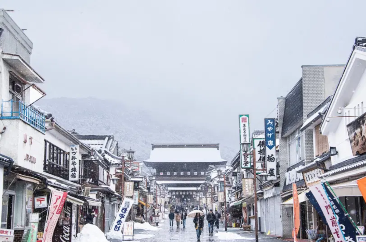 Nagano (長野, miền Trung Nhật Bản) vào một ngày tuyết rơi