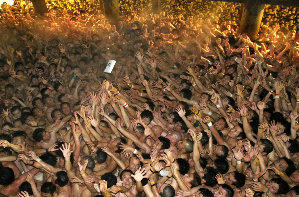 Hàng ngàn người tham gia cố gắng ra sức giành lấy đôi que may mắn trong Lễ hội khỏa thân Hadaka Matsuri
