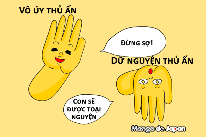 Vô úy thủ ấn (施無畏印 / せむいいん) và Dữ nguyện thủ ấn (与願印 / よがんいん) thường đi chung với nhau (như ở Đại Phật đài Nara).