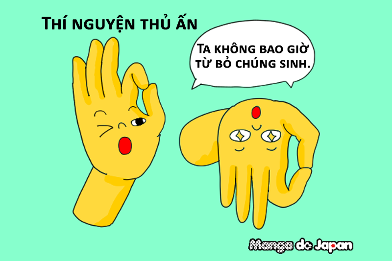 Vì thế, tay phải được xem là tượng trưng cho Đức Phật còn tay trái tượng trưng cho chúng sinh. Thủ ấn này mang ý nghĩa “trí huệ của Đức Phật bao trùm lên chúng sinh”.